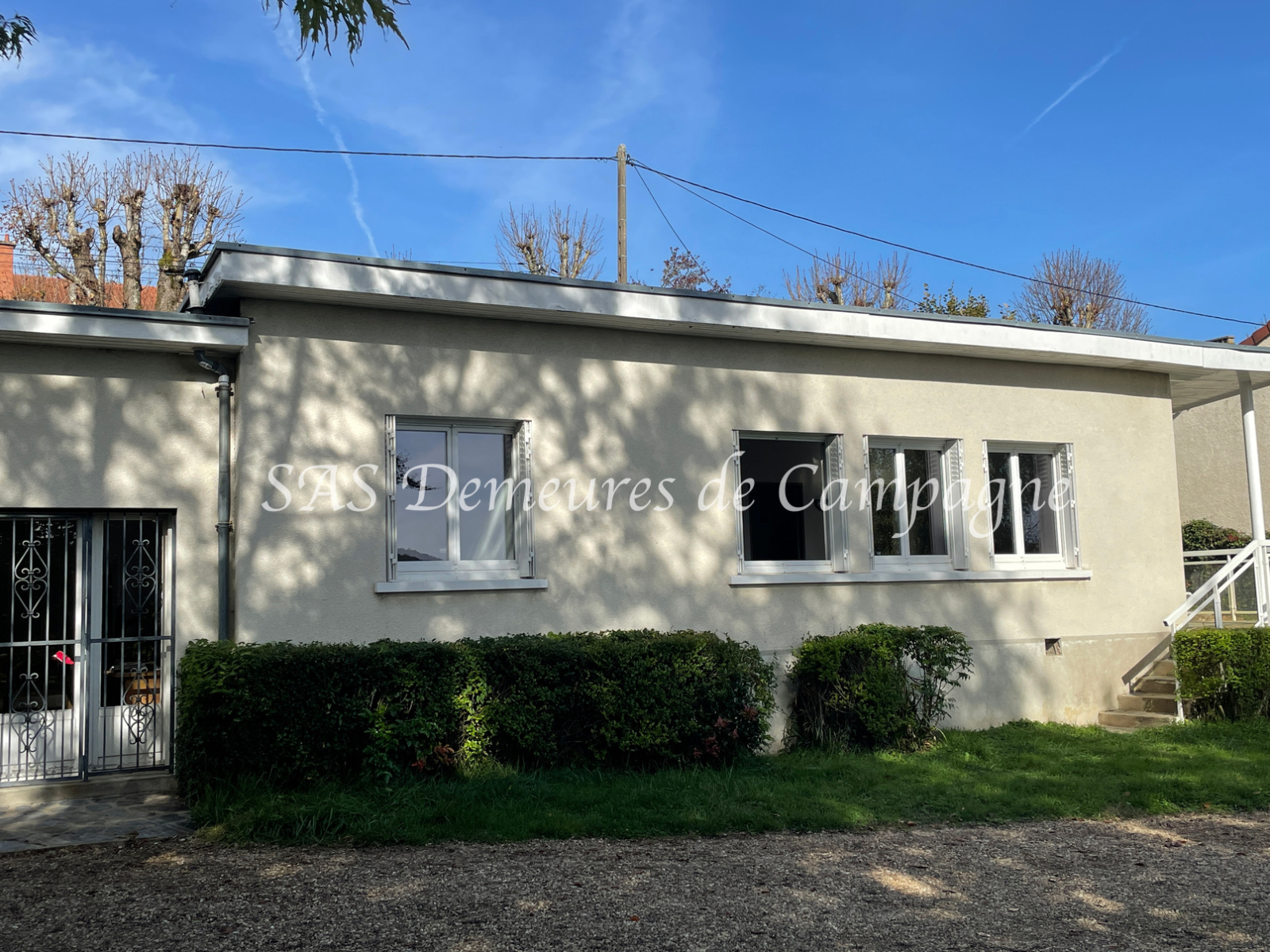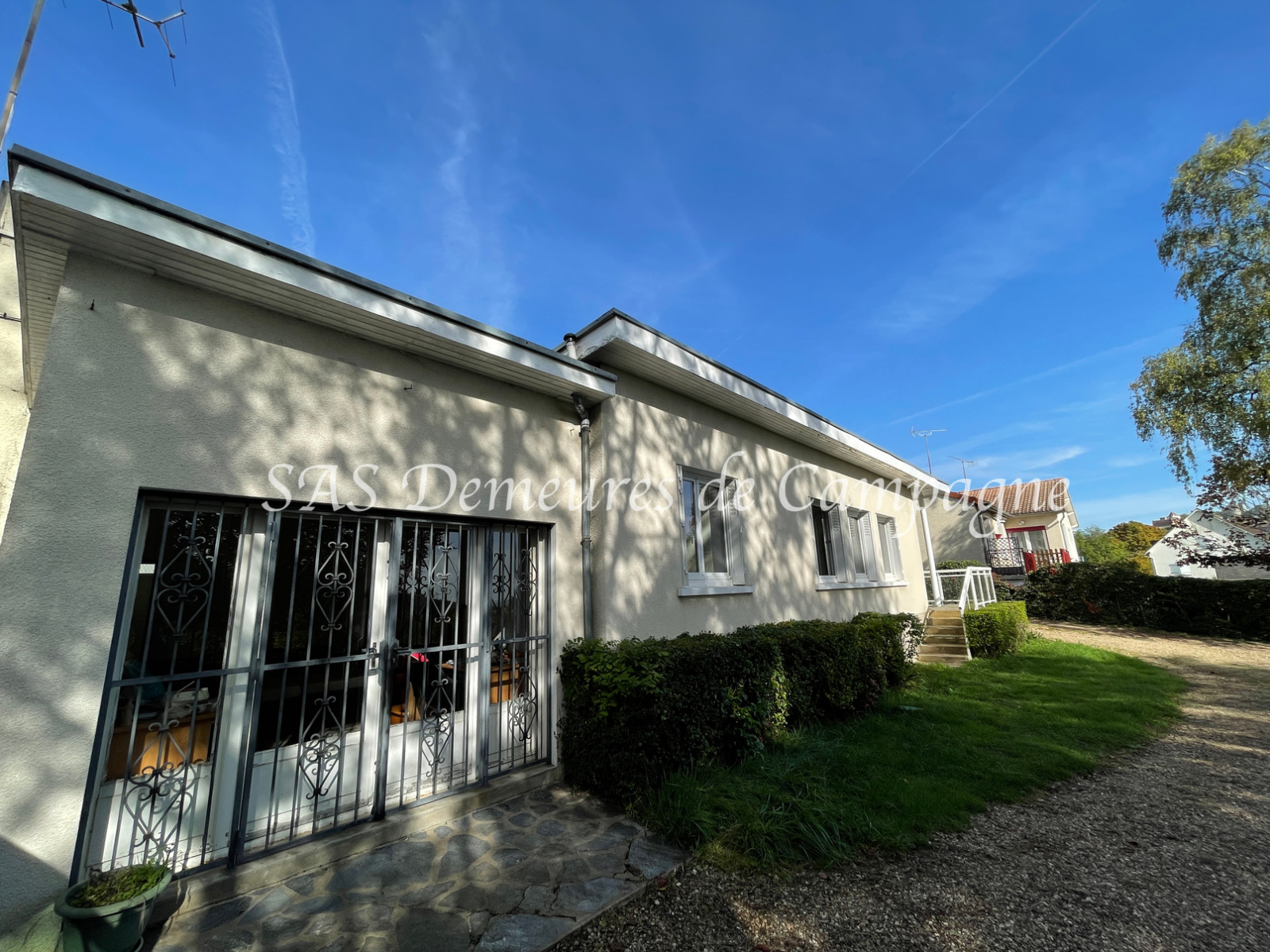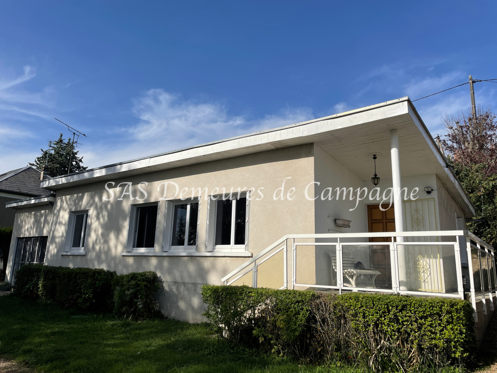 Exposée Sud, de plain-pied et d’env. 105m2, la maison développe : entrée sur salon-séjour de près de 32m2 avec poêle à granulés, deux chambres, salle de bains, Salle de sport ou bureau, puis une troisième chambre (portes fenêtres sur jardin) agrémentée d’une salle de douches. Cuisine aménagée et équipée, avec accès sur petite véranda à l’arrière, cave en sous-sol. Le tout bénéficie d’une belle luminosité grâce à l’exposition plein Sud de la maison et aux larges ouvertures sur le jardin. Celui-ci, cadastré pour env. 1272m2 est plat, arboré et entièrement clôturé. Une petite remise à usage d’atelier et un garage, indépendants, finalisent cet ensemble habitable de suite.