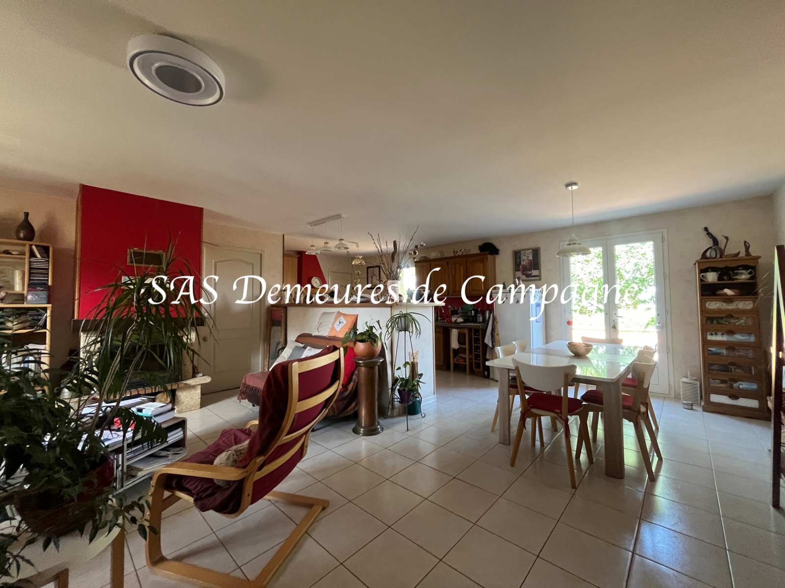 D’une surface d’env. 110m2, entièrement de plain-pied, cette maison propose : entrée sur salon-séjour, arrière-cuisine, cuisine aménagée avec accès direct sur la terrasse. L’espace nuit est composé de trois chambres et une salle de douche, WC séparés. Une dernière pièce, très lumineuse, peut servir de bureau, chambre ou atelier.