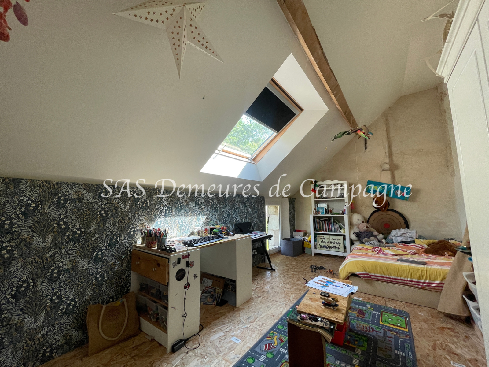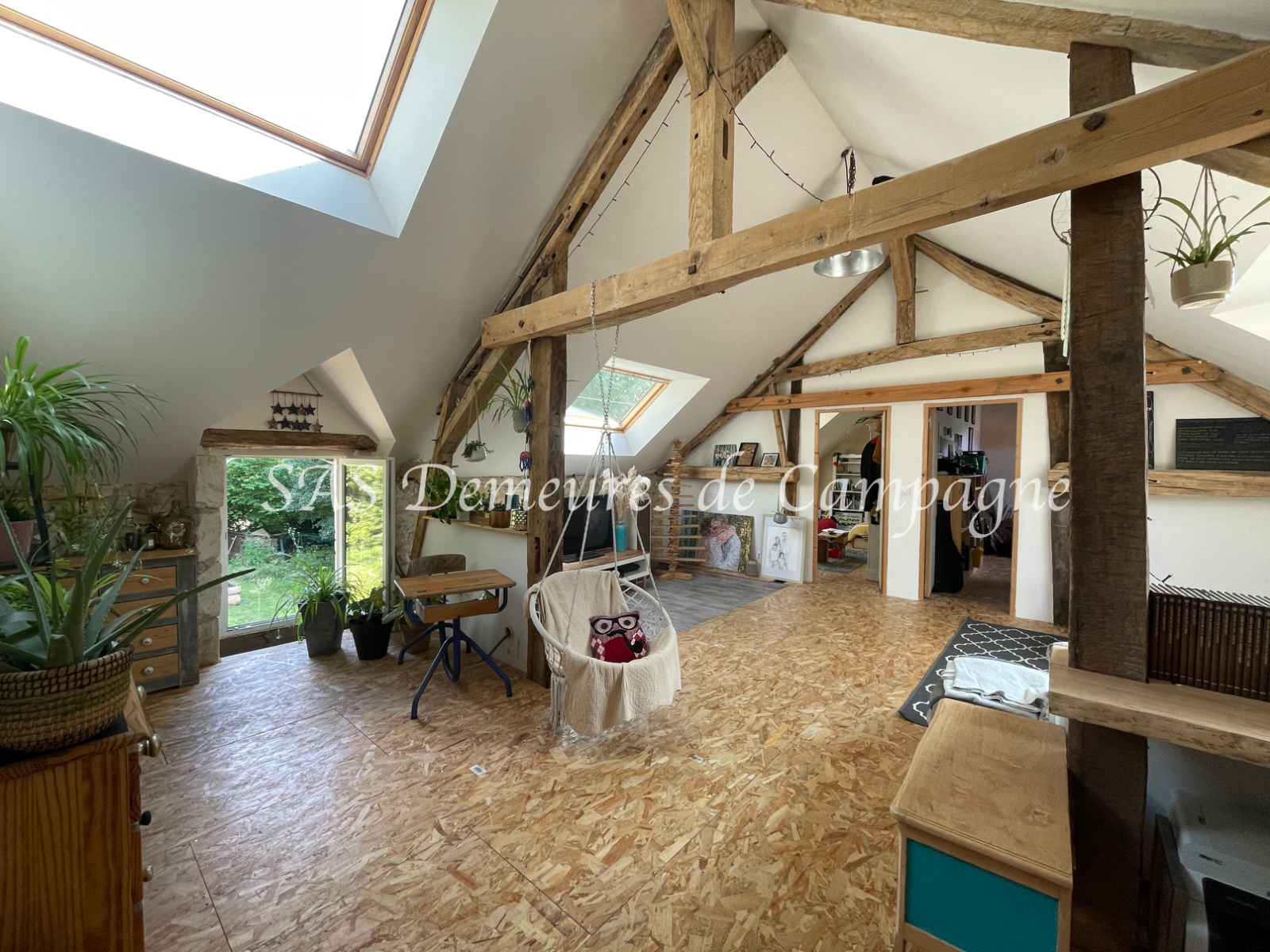 A l'étage, lumineux salon-mezzanine desservant 3 chambres. Au même niveau, un grenier. Dépendance attenante à usage d'ateliers et grange.