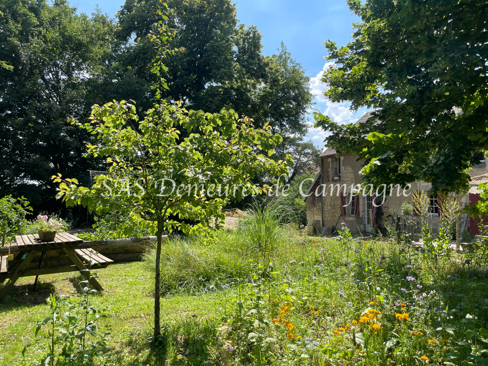 L'ensemble, harmonieux et habitable de suite, profite d'une terrasse de 25m2 et d'un jardin Sud-Est de près de 822m2. Une cave voutée finalise cette jolie fermette.