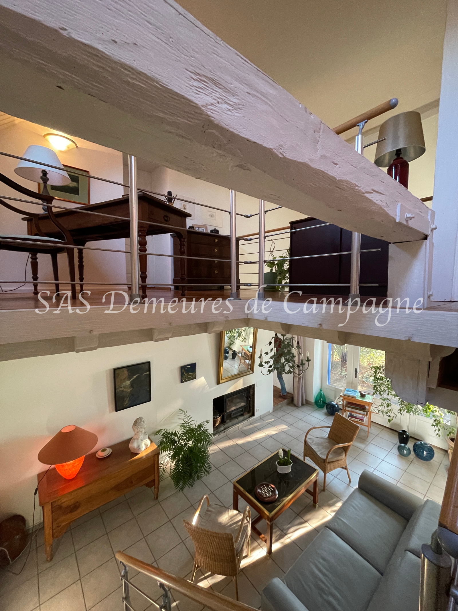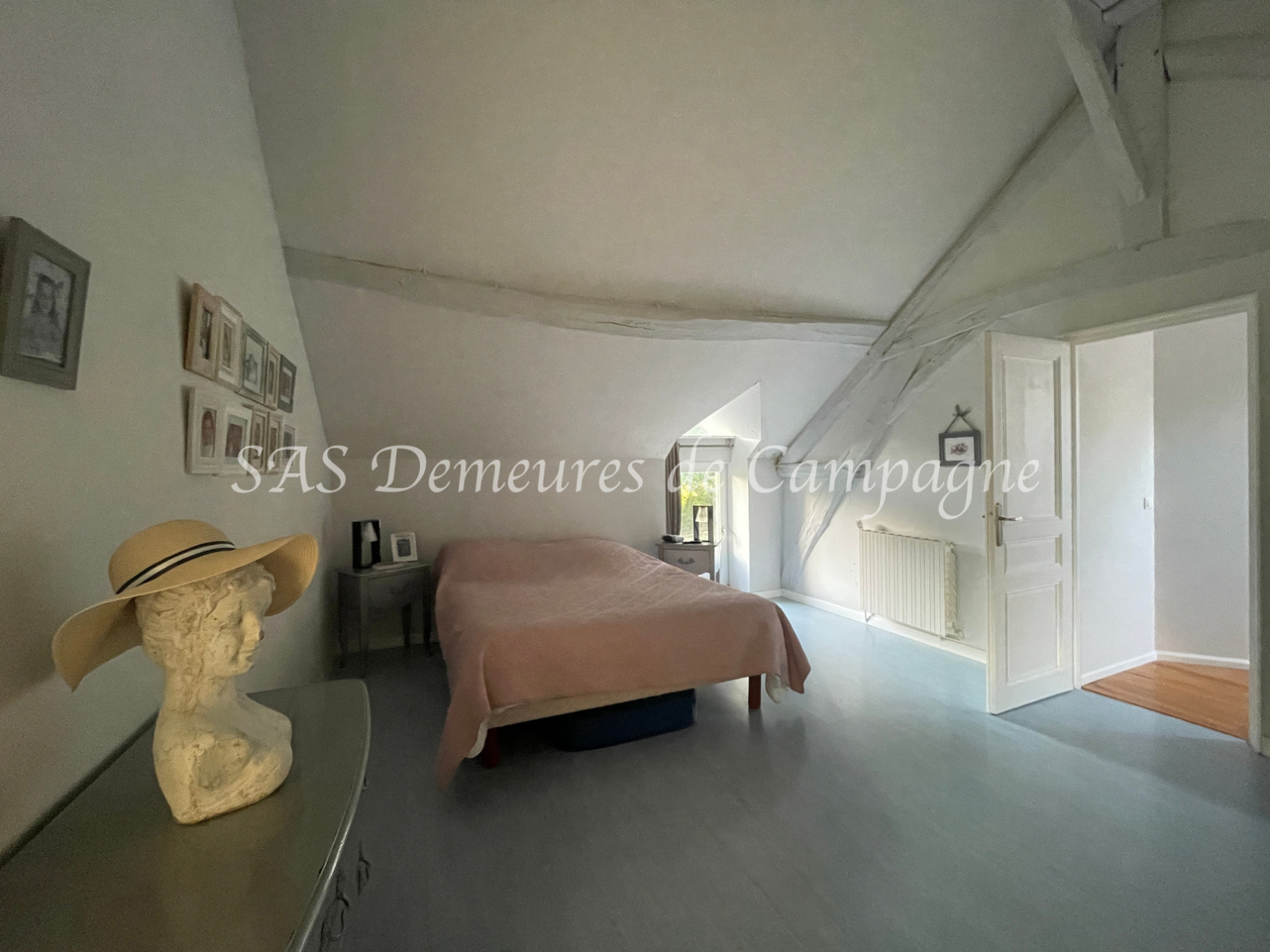Exposée Sud, dans un environnement calme, boisé et sans vis à vis, lumineuse longère d'env.170m2 habitables de suite. Le rez-de-chaussée développe cuisine aménagée et équipée, cellier, espace repas, salle de bains et douche, chaufferie, WC. Puis, salon avec cheminée avec baies vitrées sur jardin, salle à manger aisément aménageable en chambre supplémentaire de plain-pied. WC. Accès dépendances (grange et atelier pour env.120m2). Par un bel escalier en verre et chêne, accès à l'étage composé de 3 chambres, mezzanine avec bureau, WC et palier pouvant être aménagé en deuxième salle de bains. Une des chambres bénéficie d'une terrasse avec vue parc, à finir d'aménager.