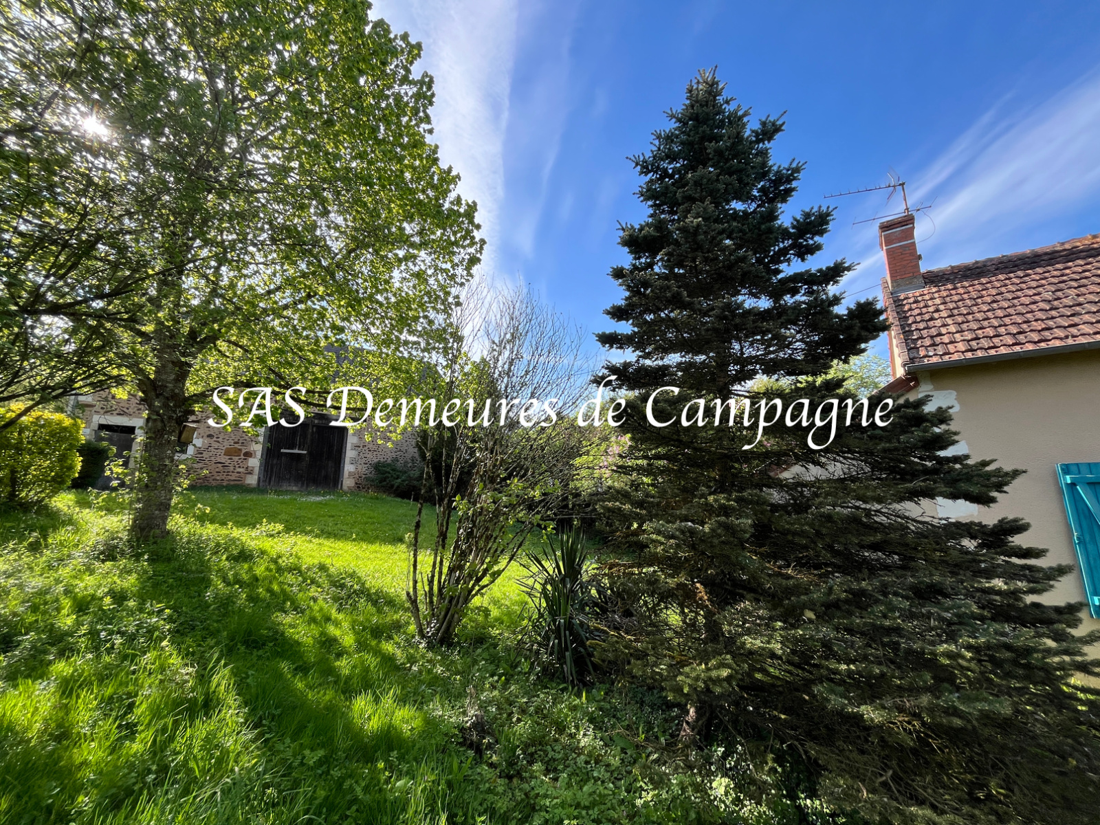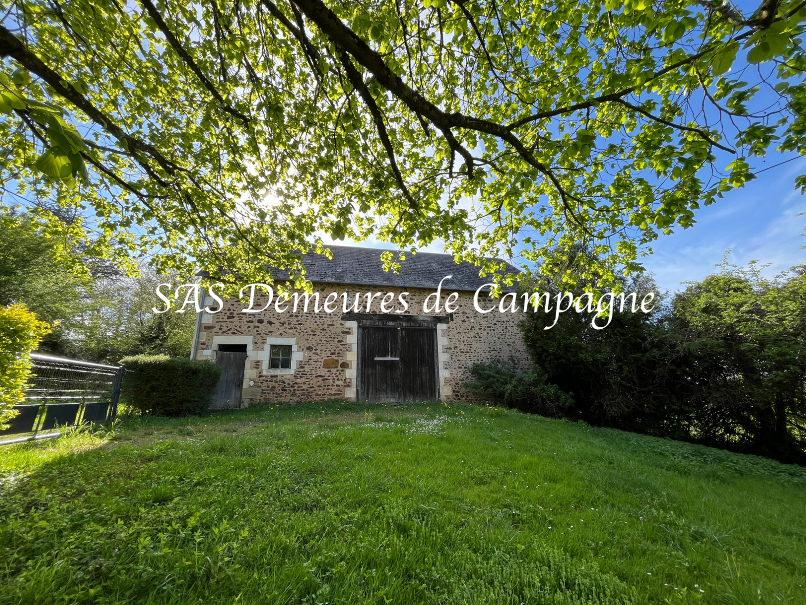 Terrain arboré et entièrement clos de 1800m2. Grange d’env.100m2.