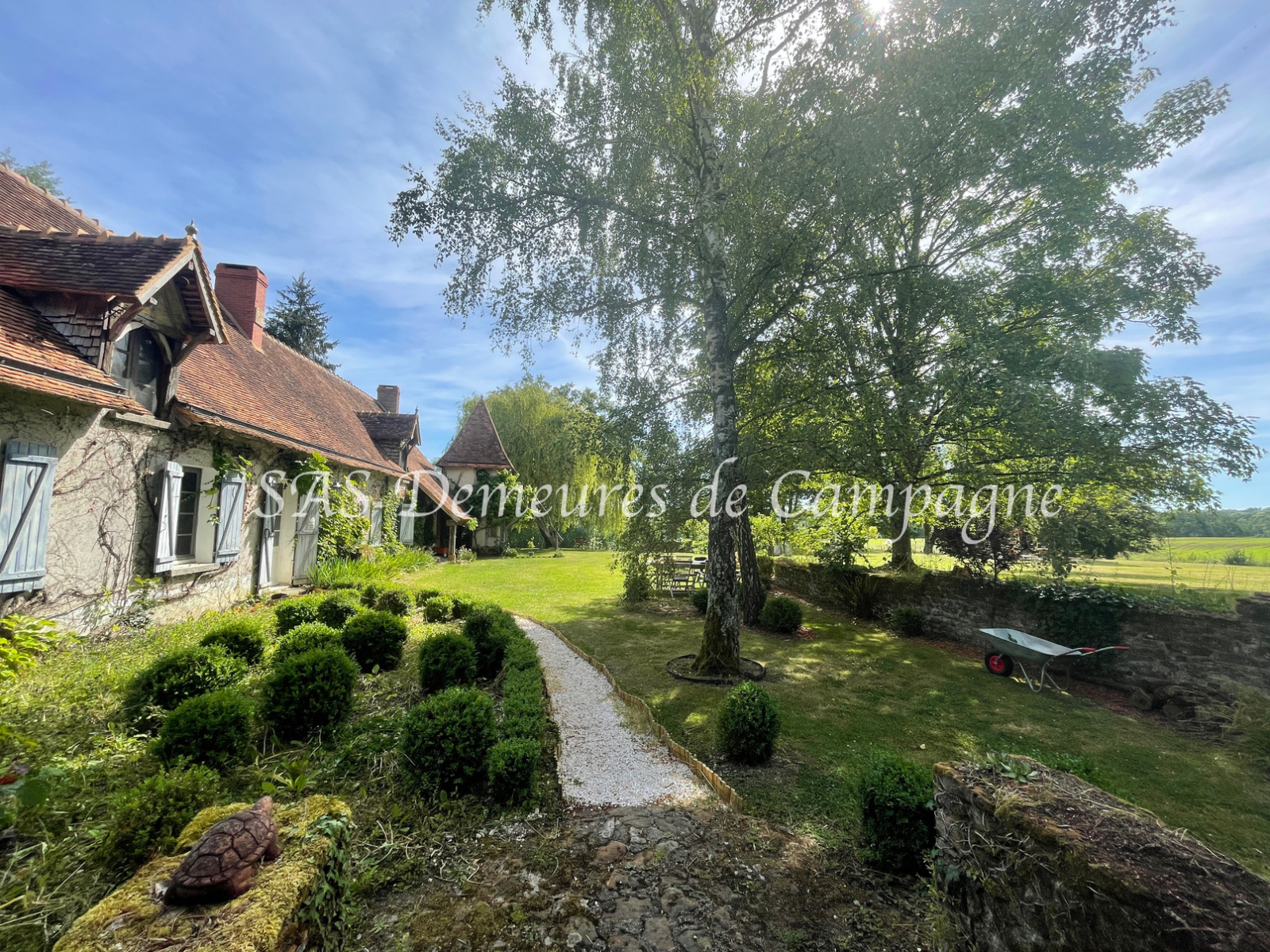 Soucieux du détail et de l'esthétisme, les propriétaires ont su parfaitement redonner le cachet à cette superbe longère, au coeur d'un parc arboré de près d'un hectare. Le hall d'entrée, bénéficiant d'une belle hauteur sous plafond, dessert : sur la gauche un bureau ou chambre traversante, salle de douche avec WC, chambre. Toilettes avec lave-mains. On accède ensuite au salon-séjour-cuisine américaine d'un seul tenant et d'environ 70m2. Les espaces sont séparés par des poutres en colombages, fenêtres de part et d'autres des pièces pour profiter de la vue sur le parc. A l'étage, palier distribuant une chambre avec salle de douche et toilette. La quatrième chambre, en-suite et d'env.55m², bénéficie d'un espace salon. La restauration complète de la bâtisse est remarquable, alliant parfaitement le confort actuel (double vitrage, cheminée avec système Polyflam, chauffage central fioul) aux matériaux nobles et authentiques : tomettes au RDC, toiture en petites tuiles de pays, colombages, murs en pierre à vue, radiateurs en fonte...Terrasse couverte et balcon suspendu (avec possibilité d'une chambre d'été) pour profiter du paysage vallonné environnant. Le parc, arboré et sans aucune nuisance, le tout pour env.9270m2, met en valeur de beaux arbres tels que chênes et séquoia centenaires. Petit étang naturel. Propriété parfaitement entretenue à la décoration soignée, à 8mn d'un village avec commerces de proximité. Cosne Cours sur Loire et Sancerre à 20mn.