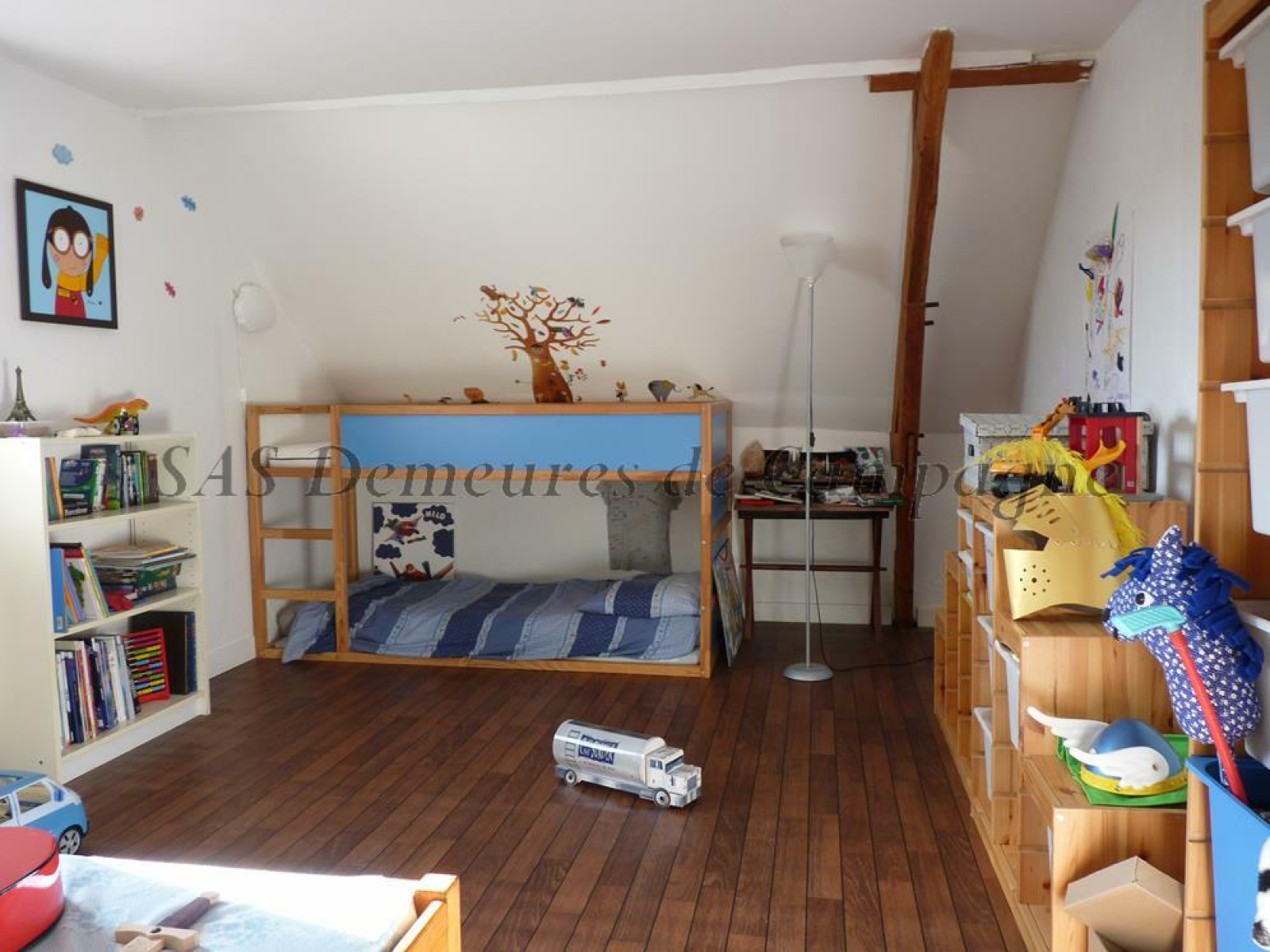 A pieds des commerces, lumineuse maison d'env. 115m² habitables et 60m² supplémentaires en sous-sol. Composée en rez-de-cour d'un sous-sol aménageable avec garage, laverie/chaufferie et espace jeux. A l'étage, séjour-cuisine américaine, le tout ouvert sur salon avec cheminée et poêle. Spacieuse salle de douche avec toilettes séparées. Au deuxième, mansardé, palier desservant 3 grandes chambres, toilettes.