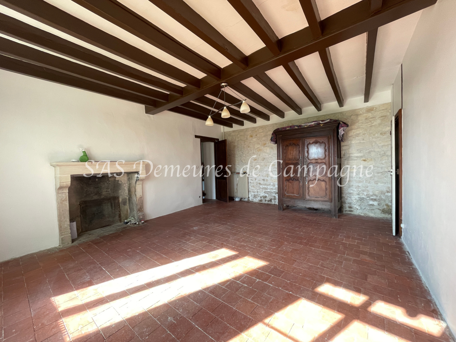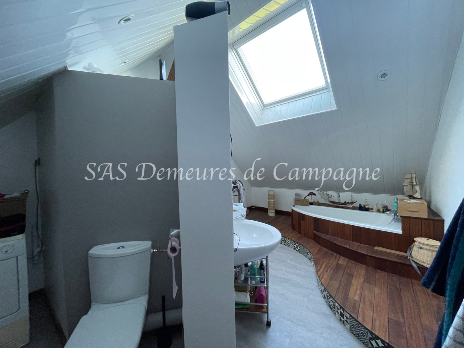 En position dominante sur terrain arboré de 2745m2 avec vue dégagée, charmante longère d'env.170m2 au sol composée : entrée, couloir desservant d'un côté beau salon avec tomettes et cheminée (accès étage), chambre et de l'autre côté, salon-salle à manger avec cheminée, cuisine, salle de douche, WC. A l'étage, palier mezzanine accueillant une chambre, puis couloir desservant 2 petites chambres mansardées et une salle de bain avec douche et WC. Le grenier d'env.30m2 permet la création d'espace supplémentaire.