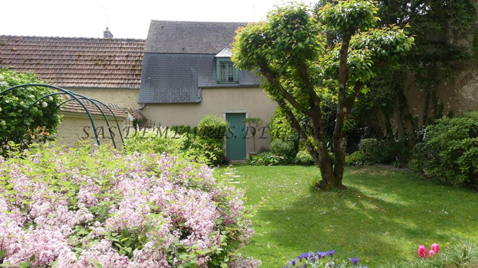 - Accès au jardin bucolique par la terrasse (12x3), exposée Sud. Faisant face à la maison, dépendance à usage de double garage-remise (avec portes automatiques sur rue), grenier aménageable au-dessus.