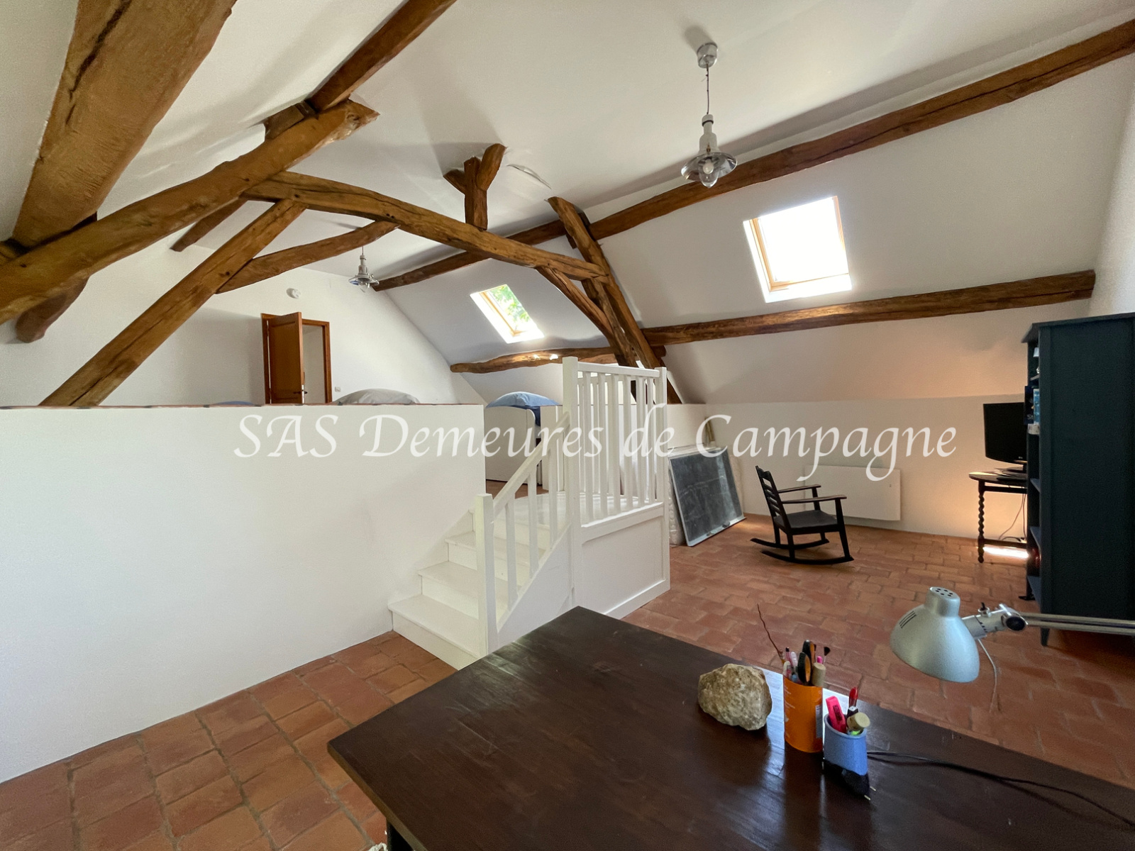 A l'étage, palier-salon, chambre, sale de douches avec WC, dortoir de près de 53m2 divisible.
