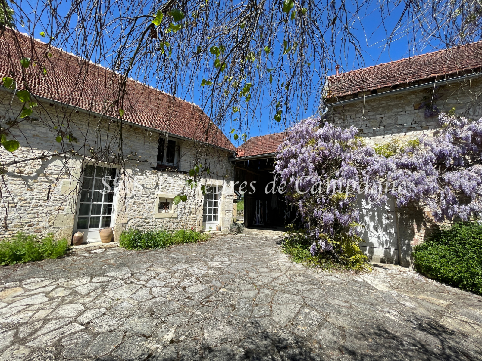 Dans hameau calme, maison restaurée d'env 225m2 exposée S-SE bénéficiant d'un environnement sans vis à vis. Les propriétaires, soucieux d'une rénovation dans le respect des éléments authentiques (tomettes, poutres, cheminées en pierre), ont su conserver l'âme de cette maison de 1836.