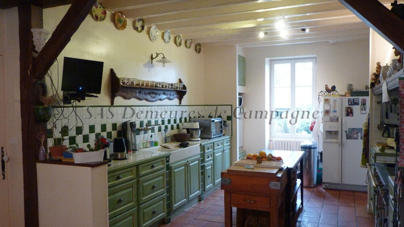 Très beau volume pour cette cuisine entièrement équipée avec piano gaz tomettes et poutres avec accès terrasse