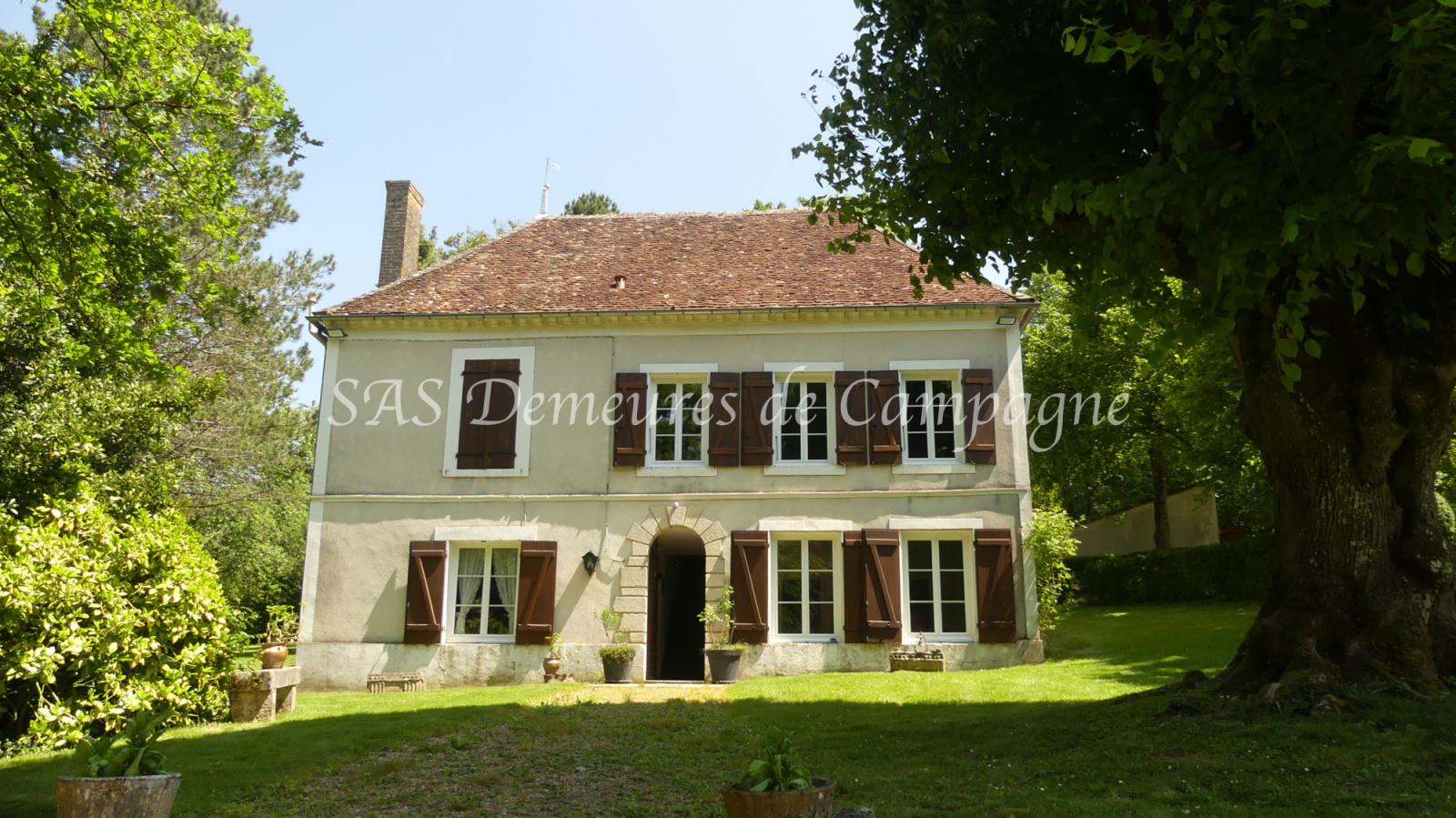 L'ensemble au coeur d'un parc avec arbres centenaires, bordé par une rivière, idéal pour les grandes familles ou pour un projet touristique. Sans vis à vis et au calme, sans être isolé. Bien rare et régulièrement entretenu.