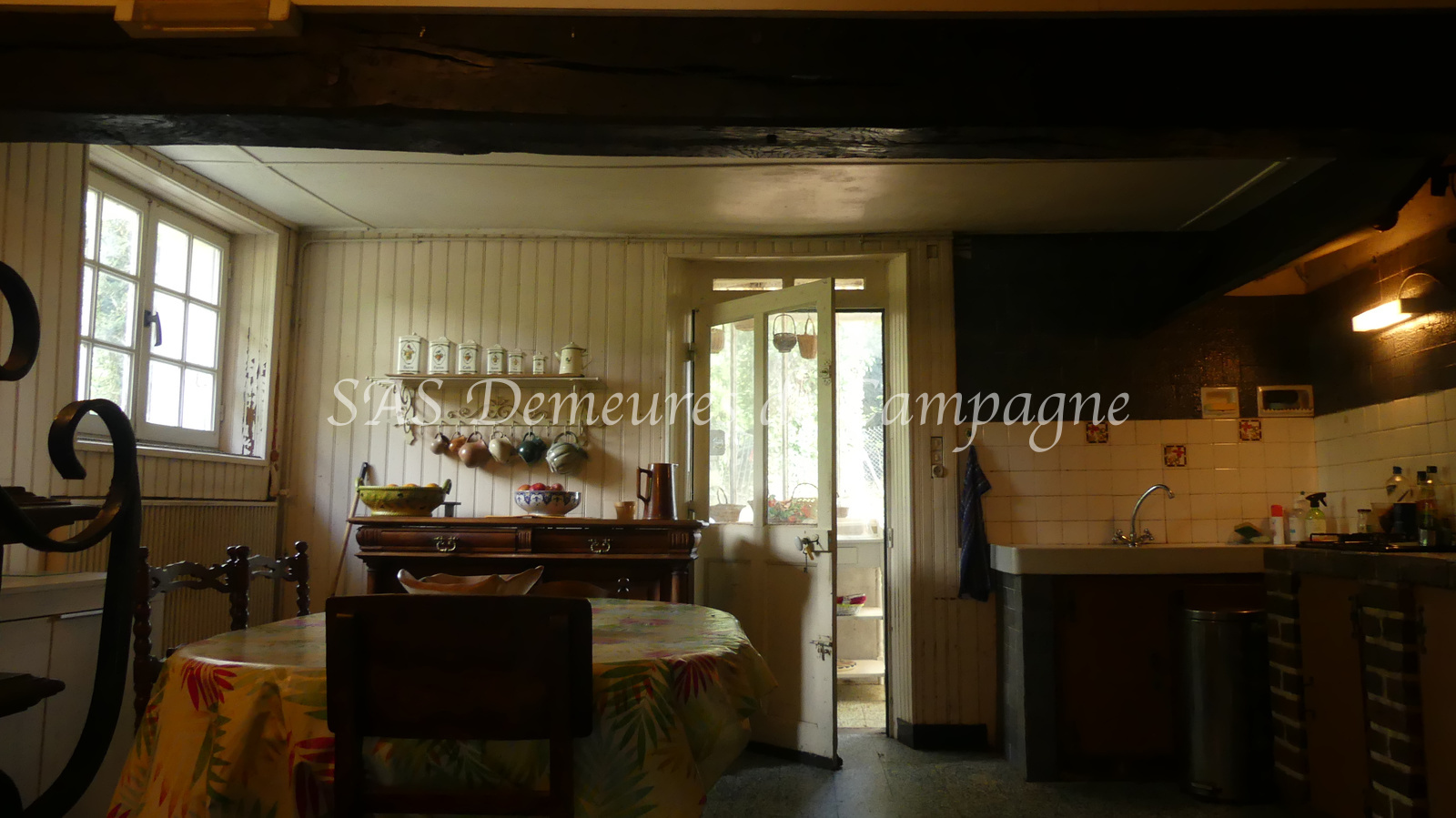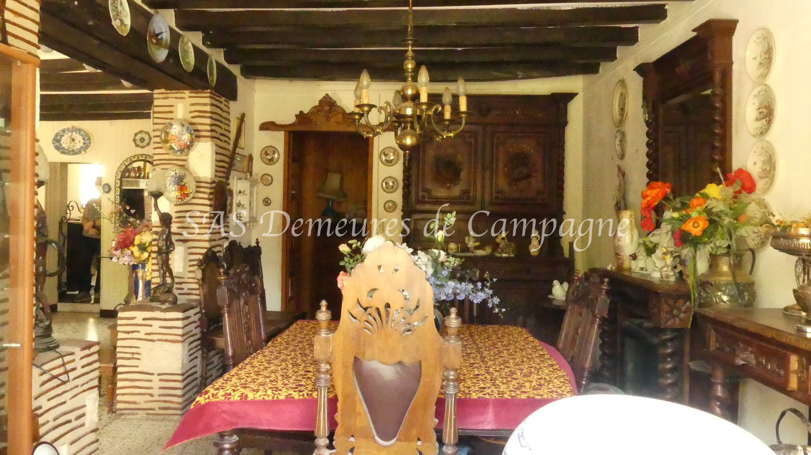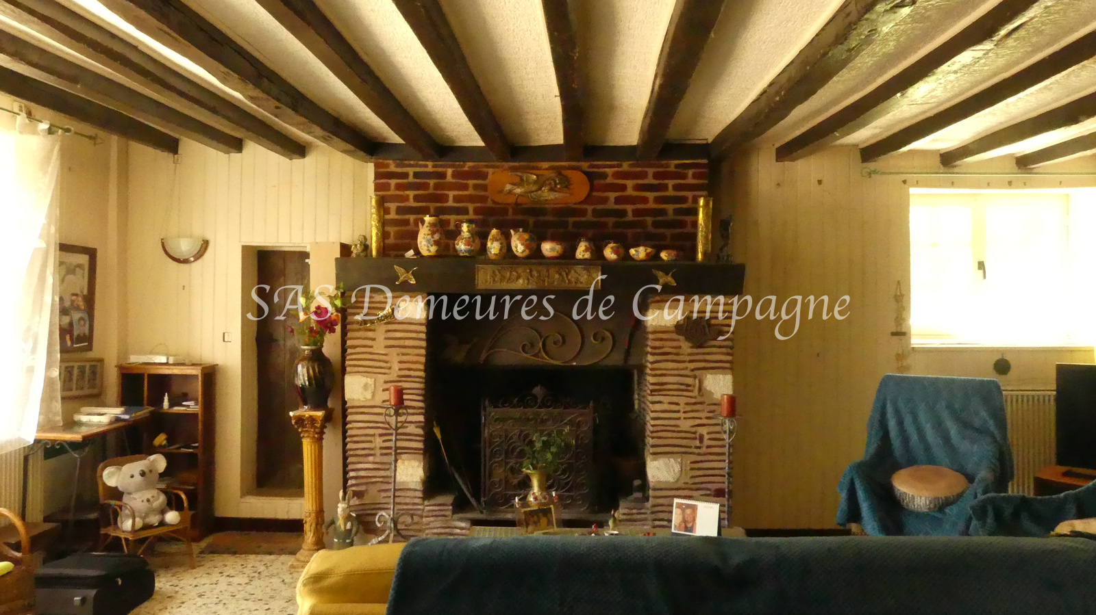- d'une fermette d'env.150m2 habitables. Le rez-de-chaussée propose : entrée sur le salon cheminée, cuisine et arrière cuisine, salle à manger. Couloir avec toilette et salle de douche séparés, une chambre de plain-pied avec vue sur le jardin. A l'étage, palier mansardé desservant une chambre et un très bel espace avec charpente apparente, actuellement à usage de dortoir. Autre pièce à rénover au premier étage. Terrasse plein sud côté jardin, clos de haies.