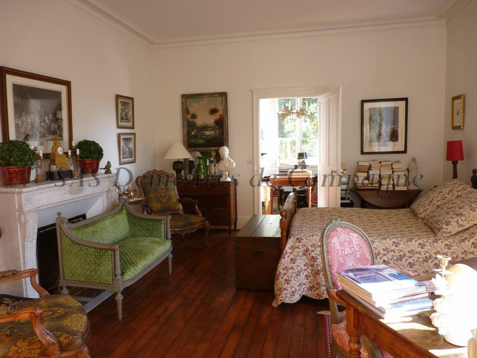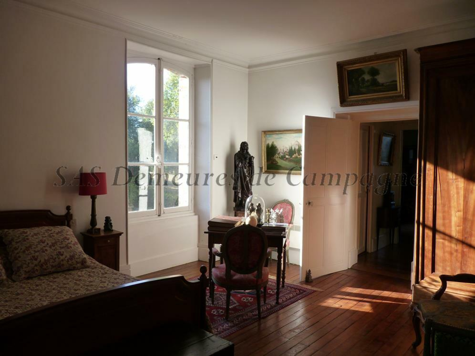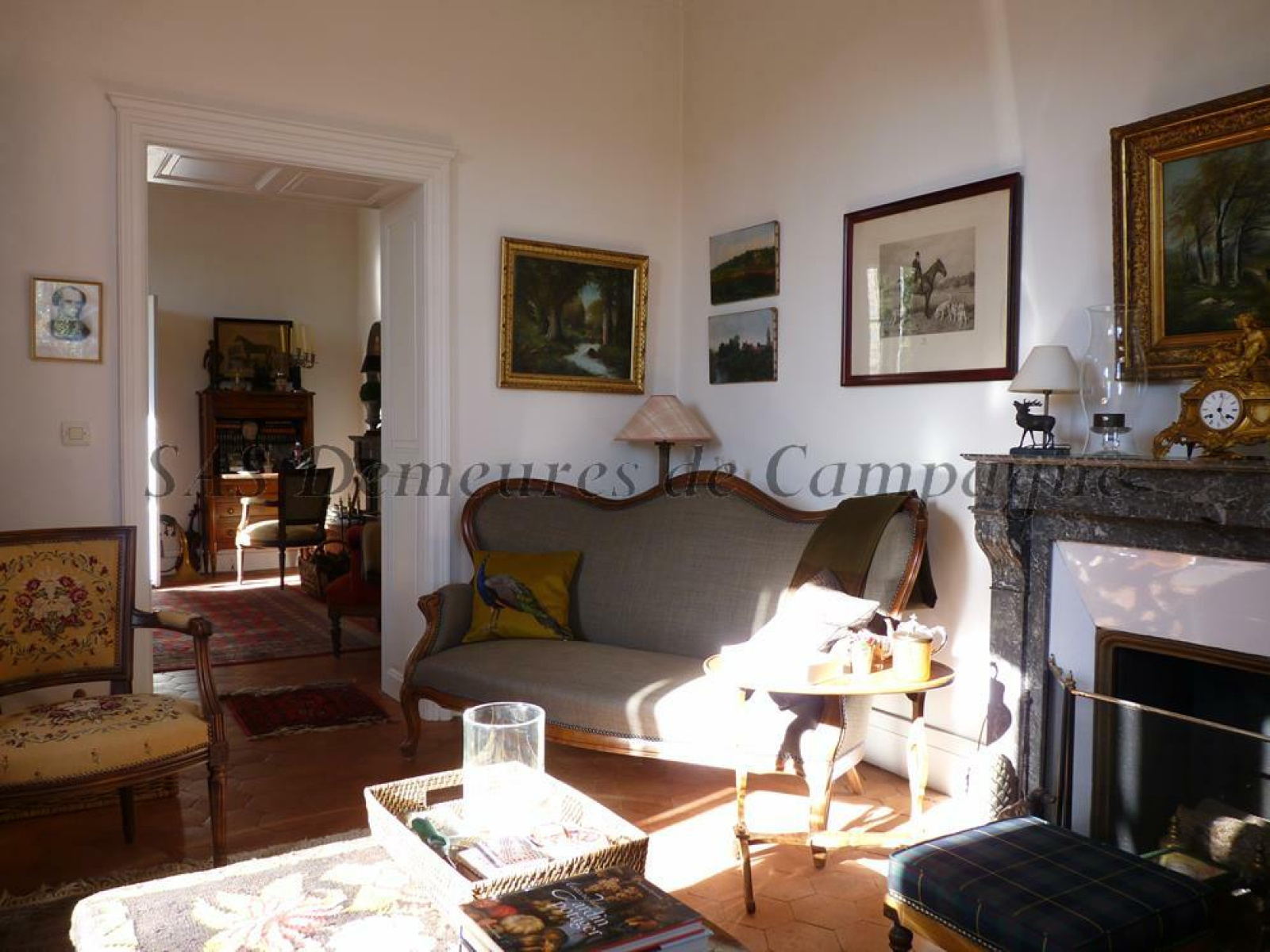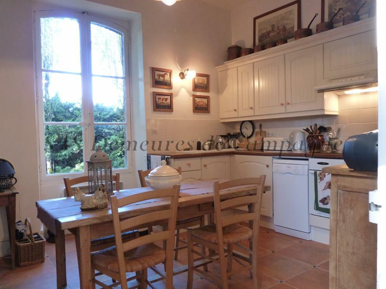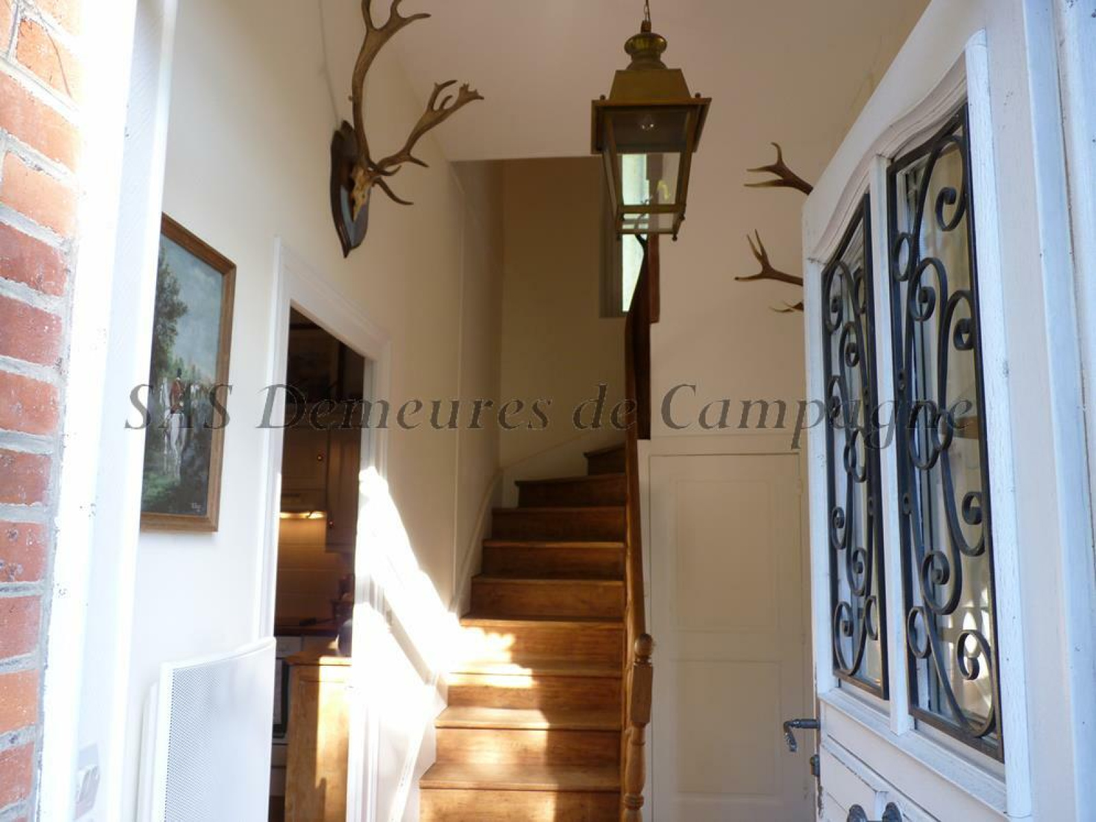 Les éléments authentiques ont été conservés : tomettes hexagonales, escalier et parquet chêne, moulures, boiseries. Toiture récente en ardoises.