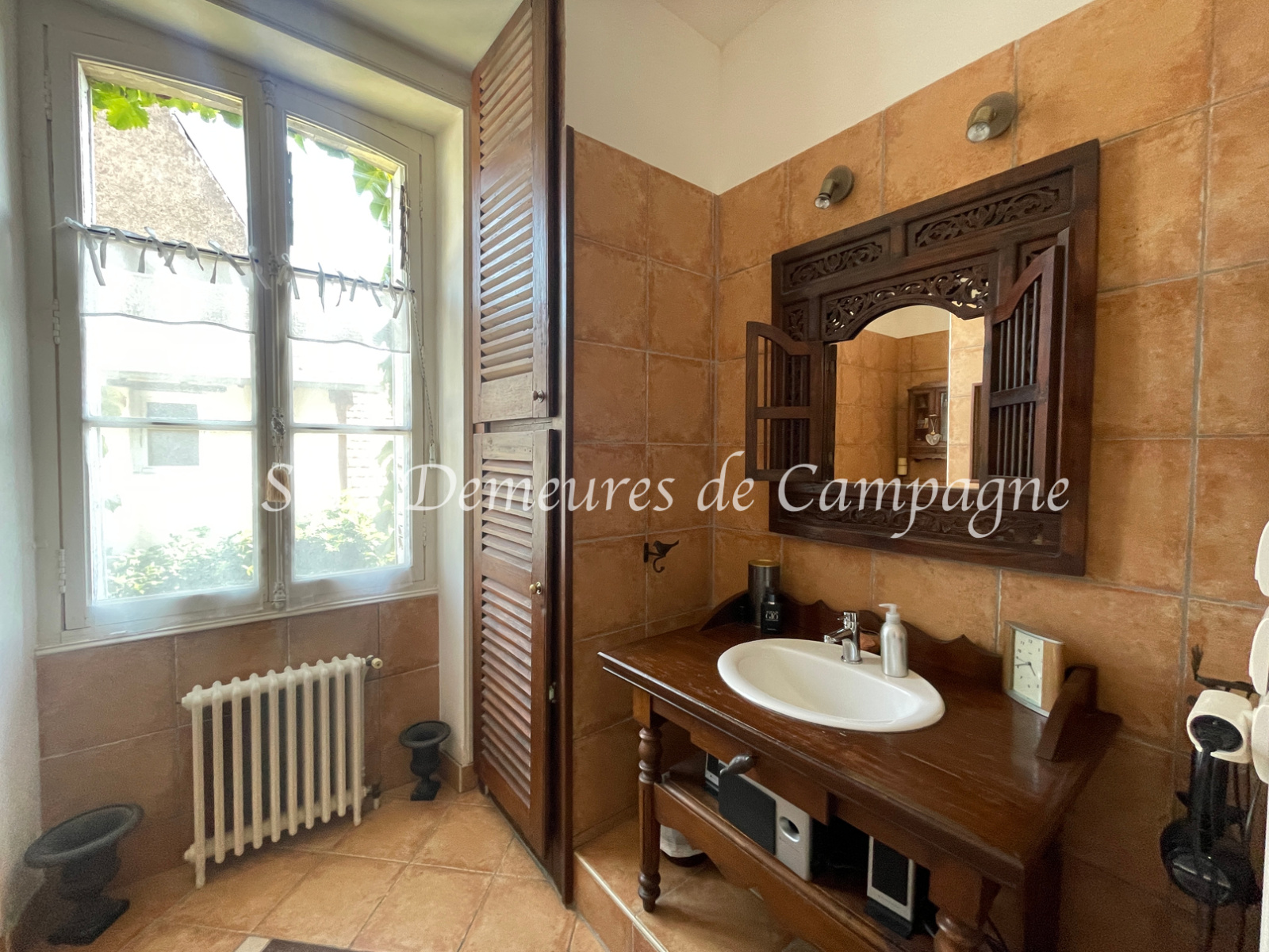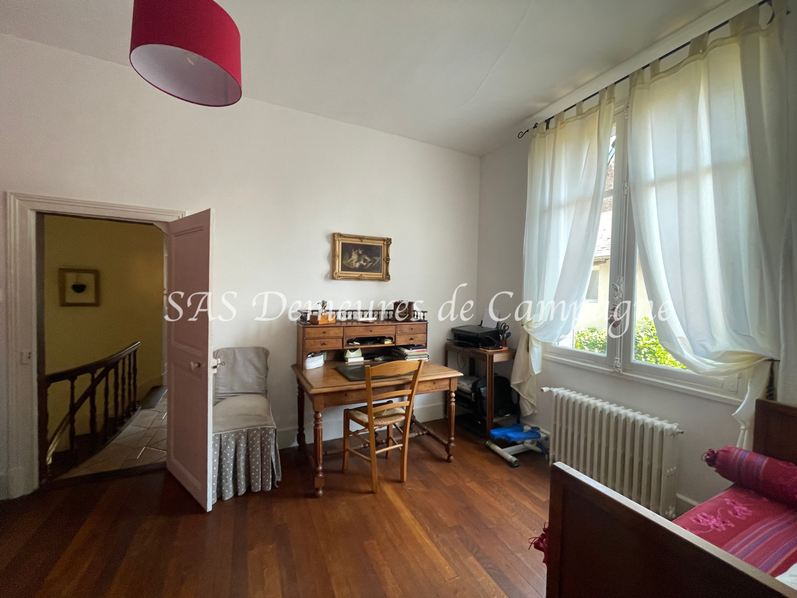 - d'une maison bourgeoise d'env.120m2 : entrée desservant sur la droite salon-séjour, sur la gauche, cuisine aménagée et équipée. Cellier et WC complètent le RDC. L'escalier en chène massif, palier distribuant une chambre avec salle de douche, un deuxième salle de douche avec WC, un bureau ou dressing traversant pour rejoindre la deuxième chambre. Magnifique charpente pour le grenier au deuxième étage. Cave voutée sous la maison.