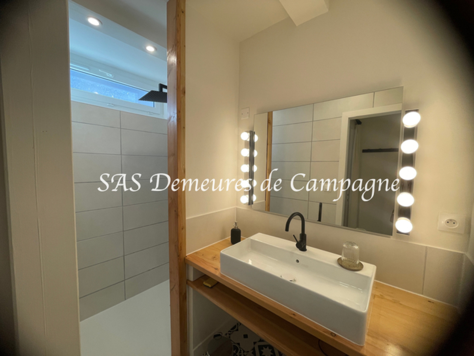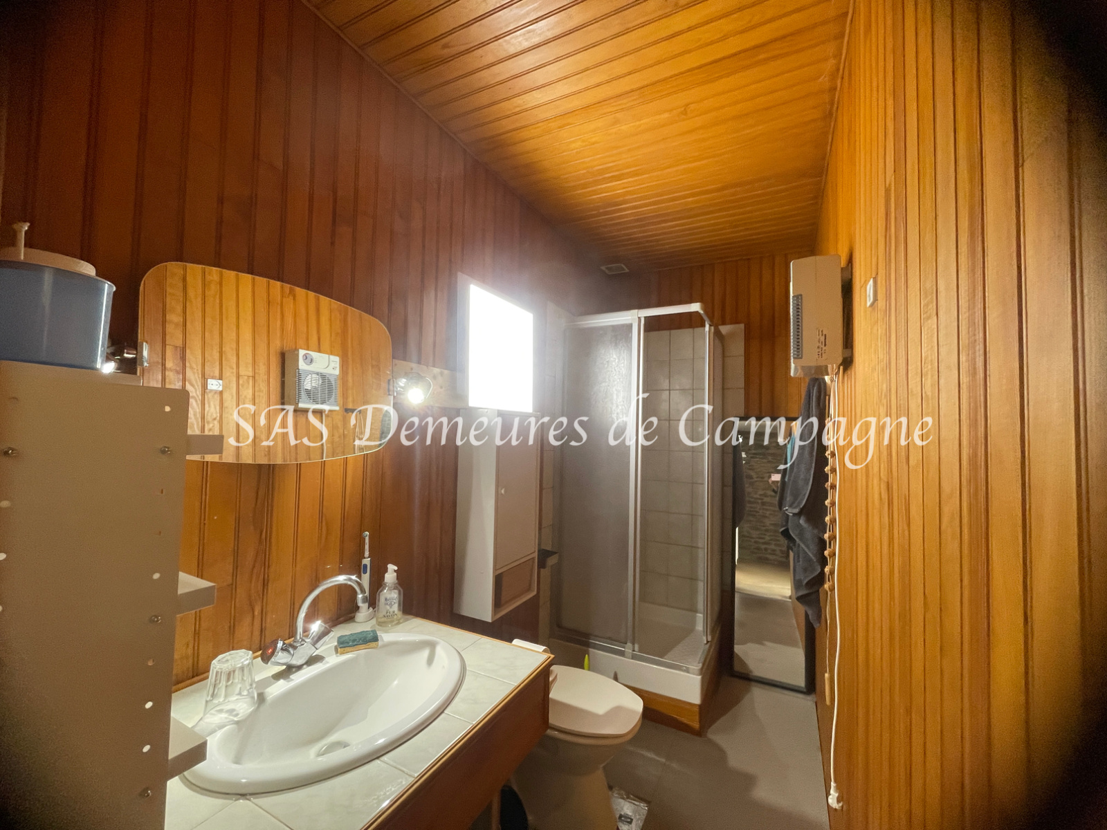 - sur l'aile droite, un gîte indépendant d'env.40m2 entièrement restauré, composé d'un salon/cuisine, une chambre, une salle de douche et un WC. Chauffage électrique.